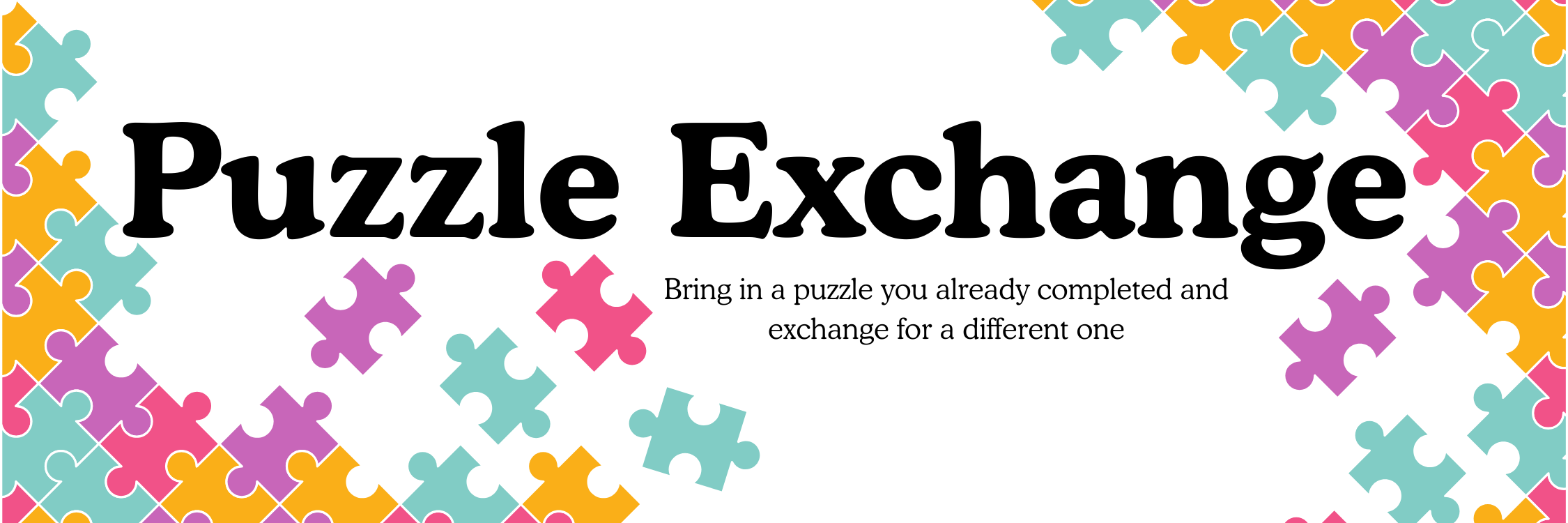 Simply bring in a puzzle you’ve already completed and swap it for a new one. Don’t have a puzzle to trade right now? That’s okay — you’re welcome to borrow one anyway!